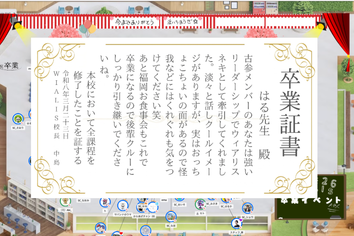 ウィアリスでは先日、卒業イベントを開催しました。