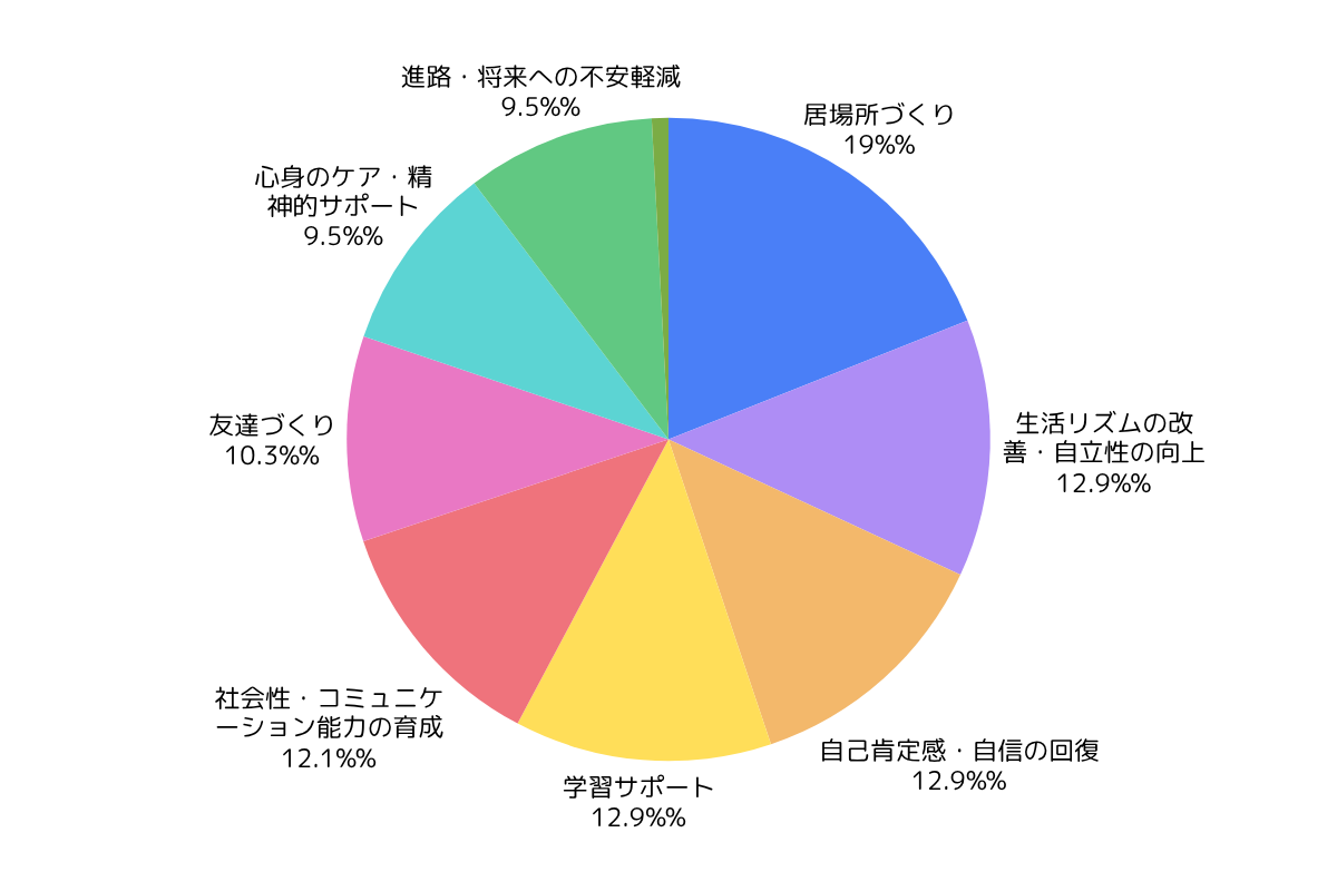今回のアンケートから見えてきたのは、学習支援だけでなく、安心できる居場所がすべての土台になっているということでした。