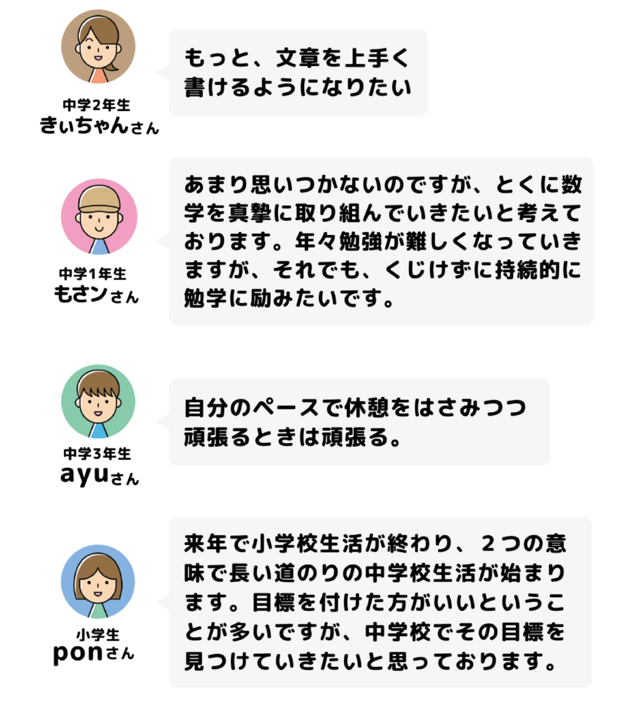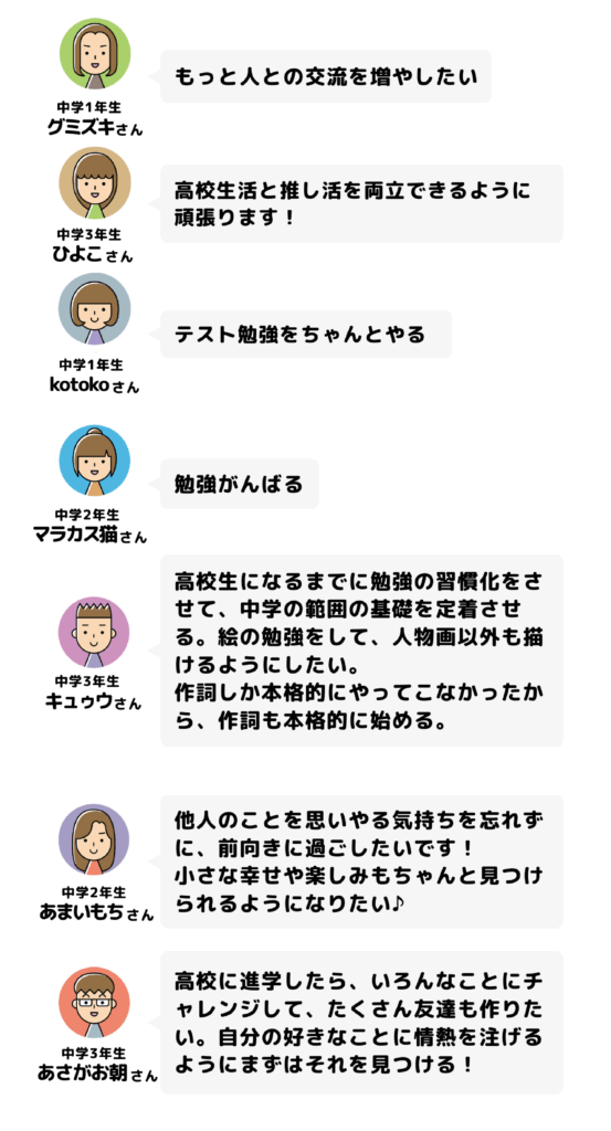 今年はどんな一年にしたいか、生徒・サポートクルーの目標を聞いてみました!