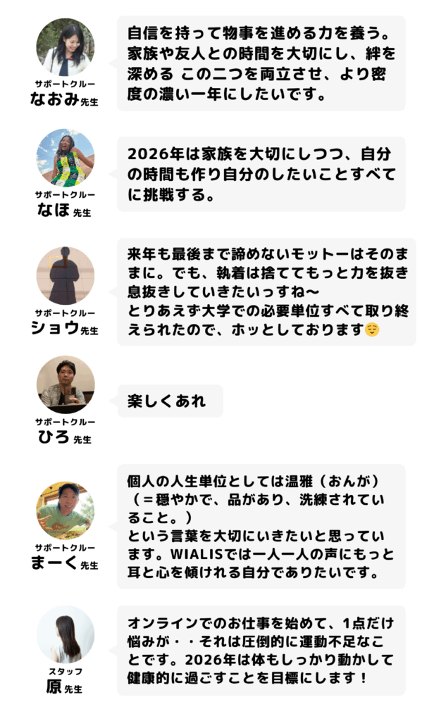 2026年もウィアリスは、「ここなら大丈夫」と思える場所であり続けるために、生徒・保護者・サポートクルーと一緒に歩んでいきます。